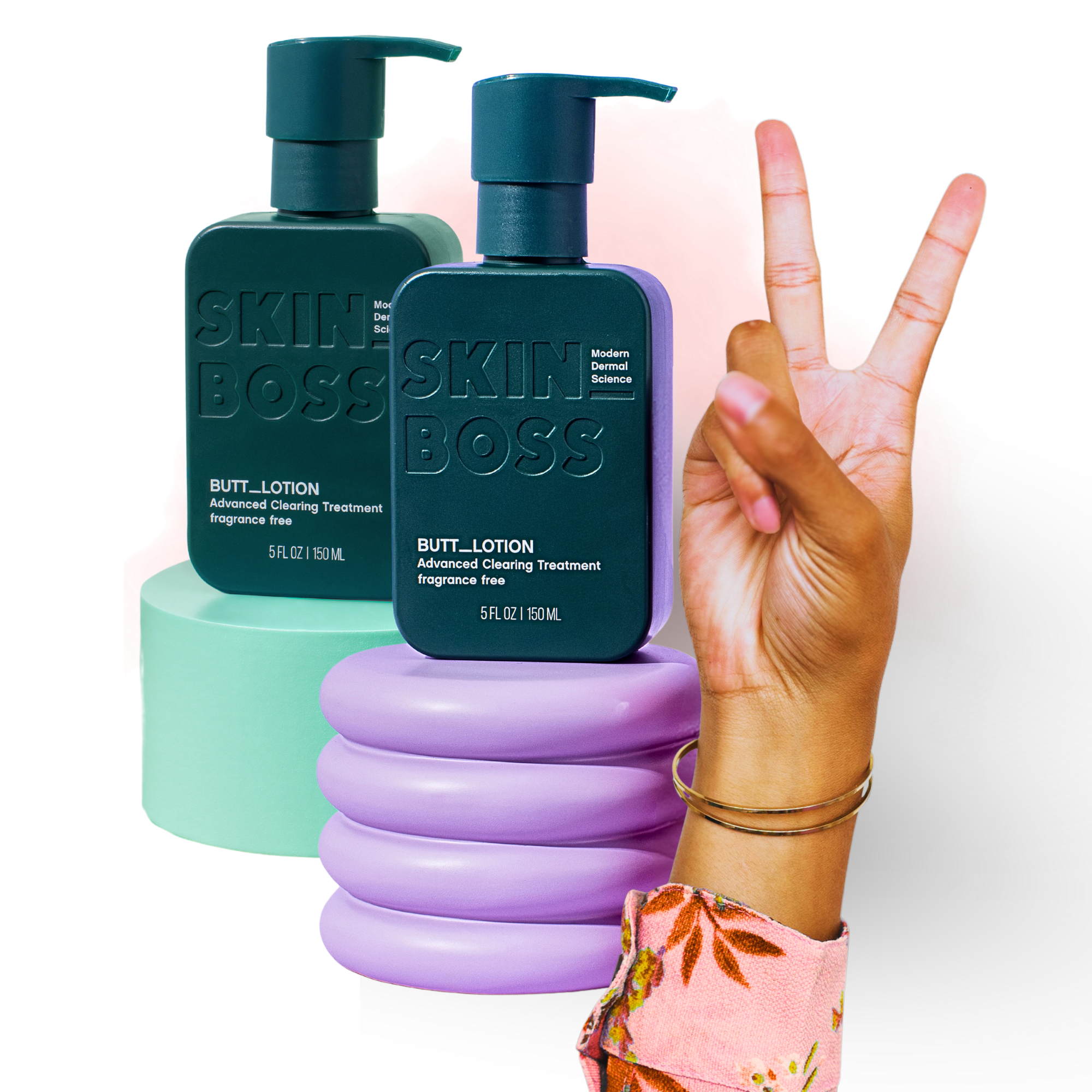 Booty blemishes are completely normal and affect people of all ages, so you’re not alone! It’s common to experience the occasional butt breakout. At SKINBOSS, we’re on a mission to normalize these skin concerns, but with our chemist-formulated, easy-to-apply lotion, you don’t have to live with them.